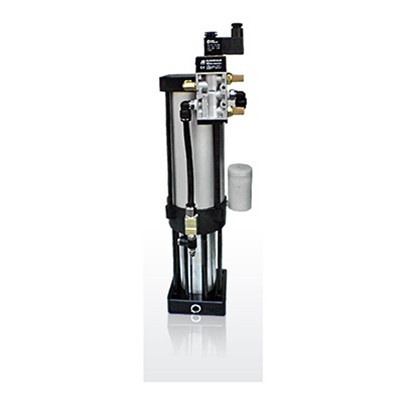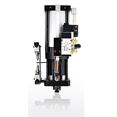 增壓缸是將一油壓缸與增壓器作一體式相結(jié)合,利用增壓器的大小不同受壓截面面積之比,因?yàn)閴毫Σ蛔?,?dāng)受壓面積由大變小時(shí),則壓強(qiáng)也會(huì)隨大小不同而變化的原理,從而達(dá)到將氣壓壓力提高到數(shù)十倍的壓力效果,以預(yù)壓式增壓缸為例:當(dāng)工作氣壓壓在液壓油表面時(shí),液壓油會(huì)壓縮空氣作用而流向預(yù)壓行程腔,此時(shí)液壓油會(huì)迅速推動(dòng)式件作位移,當(dāng)工作位移遇到阻力大于氣壓壓力時(shí)缸則停止動(dòng)作,此時(shí),增壓缸的增壓腔因?yàn)闅鈩?dòng)信)動(dòng)作,開(kāi)始增壓從而達(dá)到成型產(chǎn)品的目的。 氣液增壓缸是結(jié)合是氣缸和油缸優(yōu)點(diǎn)而改進(jìn)設(shè)計(jì)的,液壓油與壓縮空氣嚴(yán)格隔離,缸內(nèi)的活塞桿接觸工作件后自動(dòng)啟程,動(dòng)作速度快,且較氣壓傳動(dòng)穩(wěn)定,缸體裝置簡(jiǎn)單,出力調(diào)整容易,相同條件下可達(dá)到油壓機(jī)之高出力,低損耗,安裝容易,所占用的空間小,故障少無(wú)溫升之困擾,壽命長(zhǎng),噪聲小,等核心特性。 1、預(yù)壓式增壓缸:當(dāng)工作氣壓壓在液壓油表面時(shí),液壓油會(huì)因壓縮空氣作用而流向預(yù)壓行程腔,此時(shí)液壓油會(huì)迅速推動(dòng)軸心作位移,當(dāng)工作位移遇到的阻力大于氣壓壓力時(shí)預(yù)壓軸心則停止動(dòng)作,此時(shí),增壓缸的增壓段因?yàn)闅鈩?dòng)壓力動(dòng)作,增壓軸心亦開(kāi)始作位移動(dòng)作,并擠壓預(yù)壓缸體里的低壓油,使之增壓從而產(chǎn)生強(qiáng)大推力的效果。 2、直式增壓缸:當(dāng)工作氣壓壓在增壓段活塞表面時(shí),活塞會(huì)因壓縮空氣作用而流向油腔,此時(shí)液壓油會(huì)迅速推動(dòng)軸心作位移,此時(shí)軸心移動(dòng)的距離(行程)為高壓力行程(增壓行程)